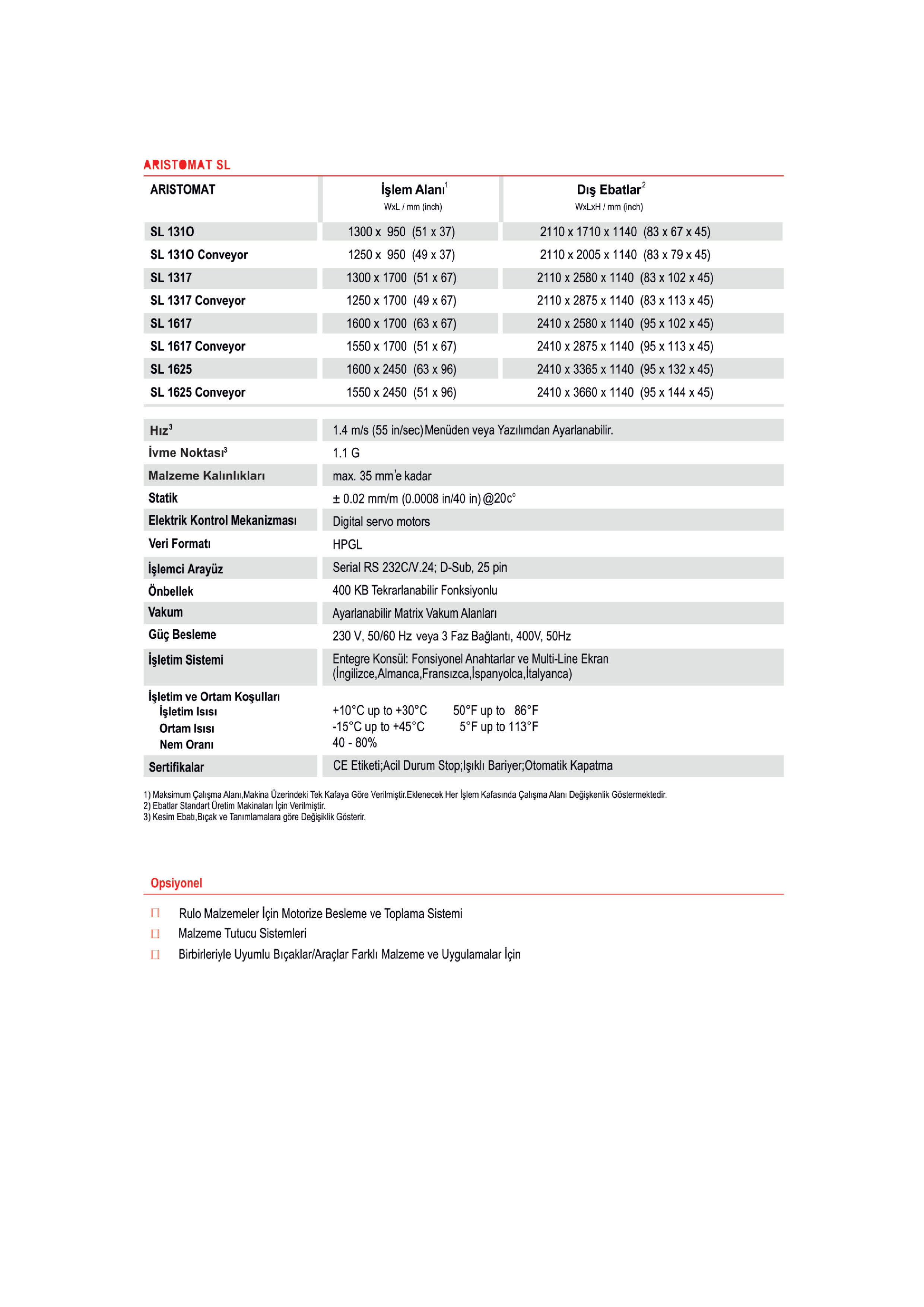 100 cm’den 800 cm’e Kadar Tabla Opsiyonu.