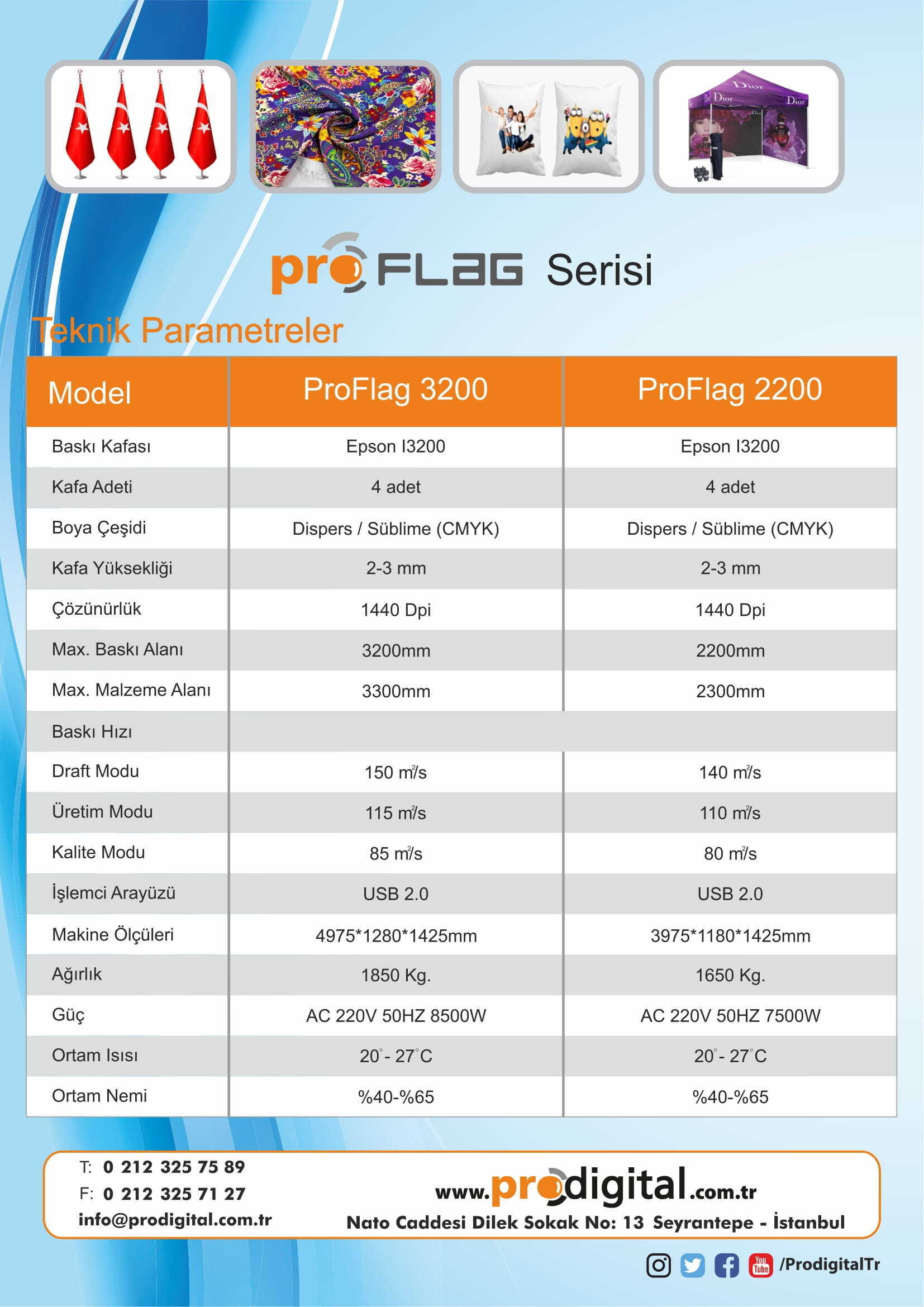 Proflag A3204/ A2204 Kendinden Fikseli Kumaş/Bayrak Baskı Makinesi